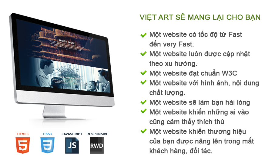 Thiết kế Website - một “Đại diện” cho công ty bạn trên Internet và tiếp thị hiệu quảng cho trang web của bạn có thể mất vài tuần hoặc hằng tháng để Việt Art nghiên cứu cùng với các chuyên viên khác nhau: Chuyên viên thiết kế web, chuyên viên phát triển web, các chuyên gia về SEO, copywriter,… nhằm mang lại một website hiệu quả cho khách hàng, chứ không chỉ đơn thuần là thiết kế web.