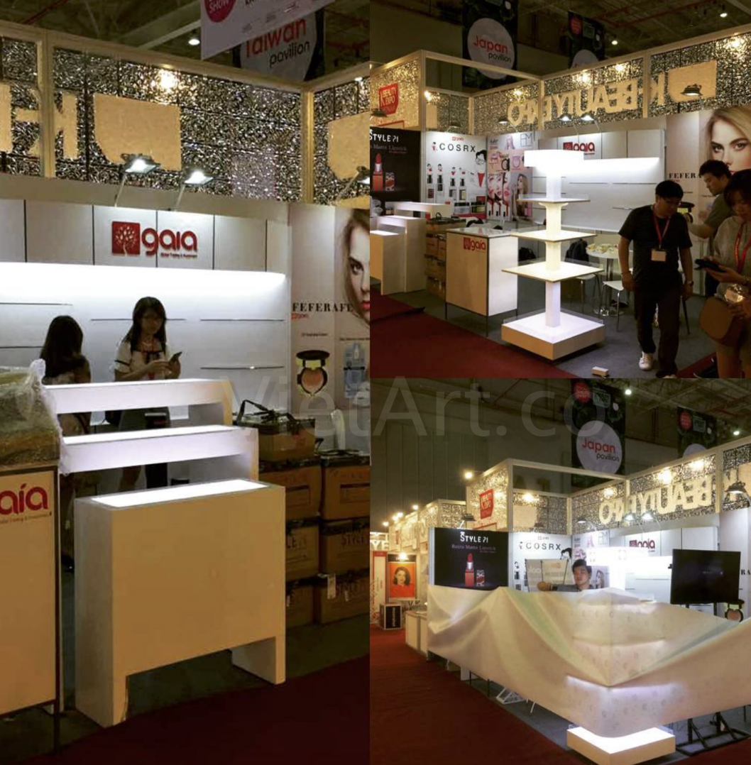 Gian hàng tiêu chuẩn thường được BTC Hội chợ - Triển lãm cung cấp sẵn được các Doanh nghiệp "trang trí" lại nhưng vẫn giống nhau đến hơn 90%. Tại Việt Art cung cấp giải pháp chắc chắn sẽ làm tăng yếu tố hấp dẫn về mặt hình ảnh, nổi bật hình ảnh thương hiệu so với những gian hàng tiêu chuẩn thông thường. Gian hàng được thiết kế sẽ thi công bên trong diện tích gian hàng tiêu chuẩn của bạn mà không phá đi kết cấu sẵn có của gian hàng.