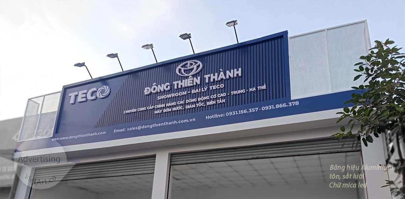 Bảng hiệu aluminium, logo mica led, lam nhôm xanh